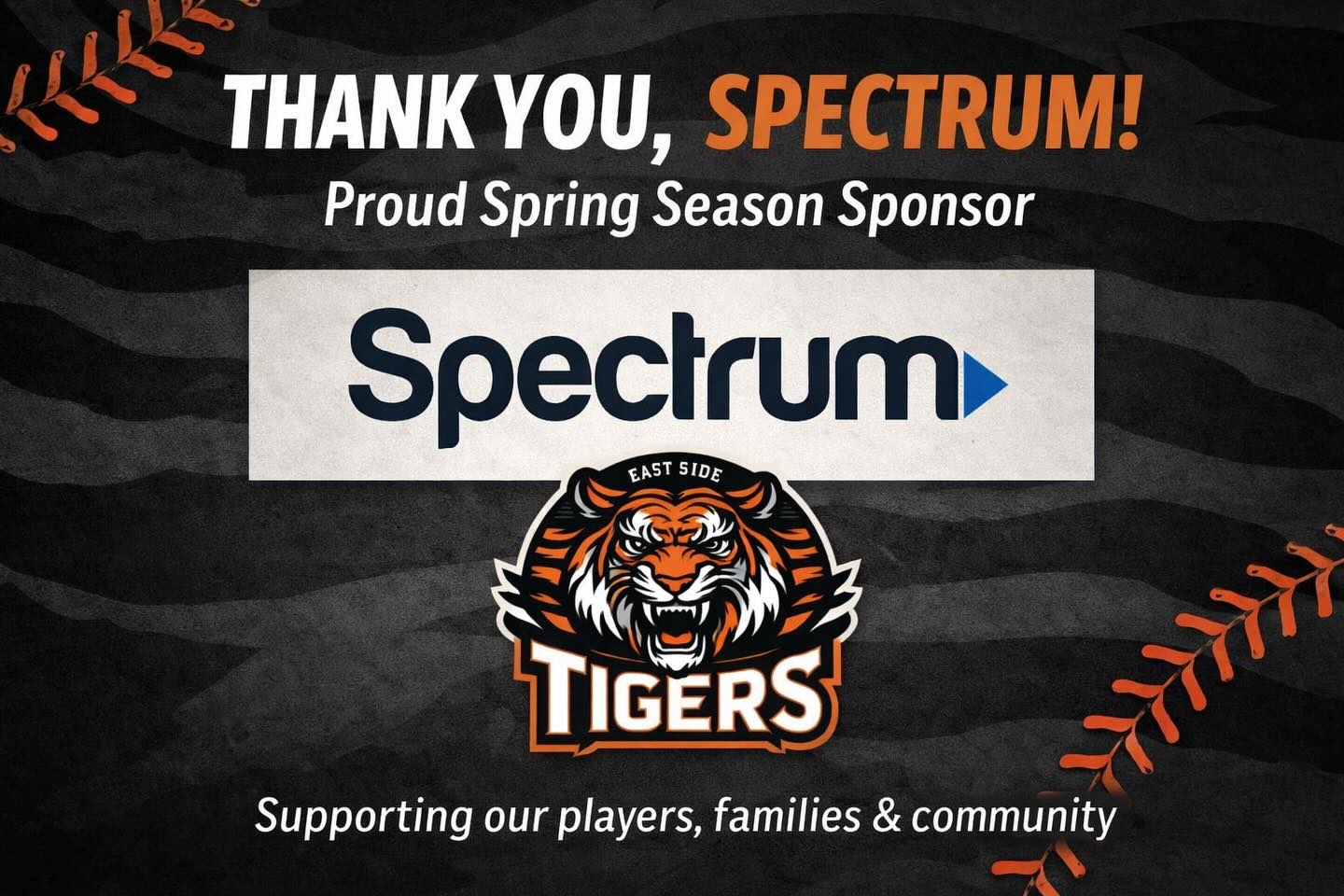 The Eastside Tigers would like to thank Spectrum for their sponsorship for the 2026 season.
