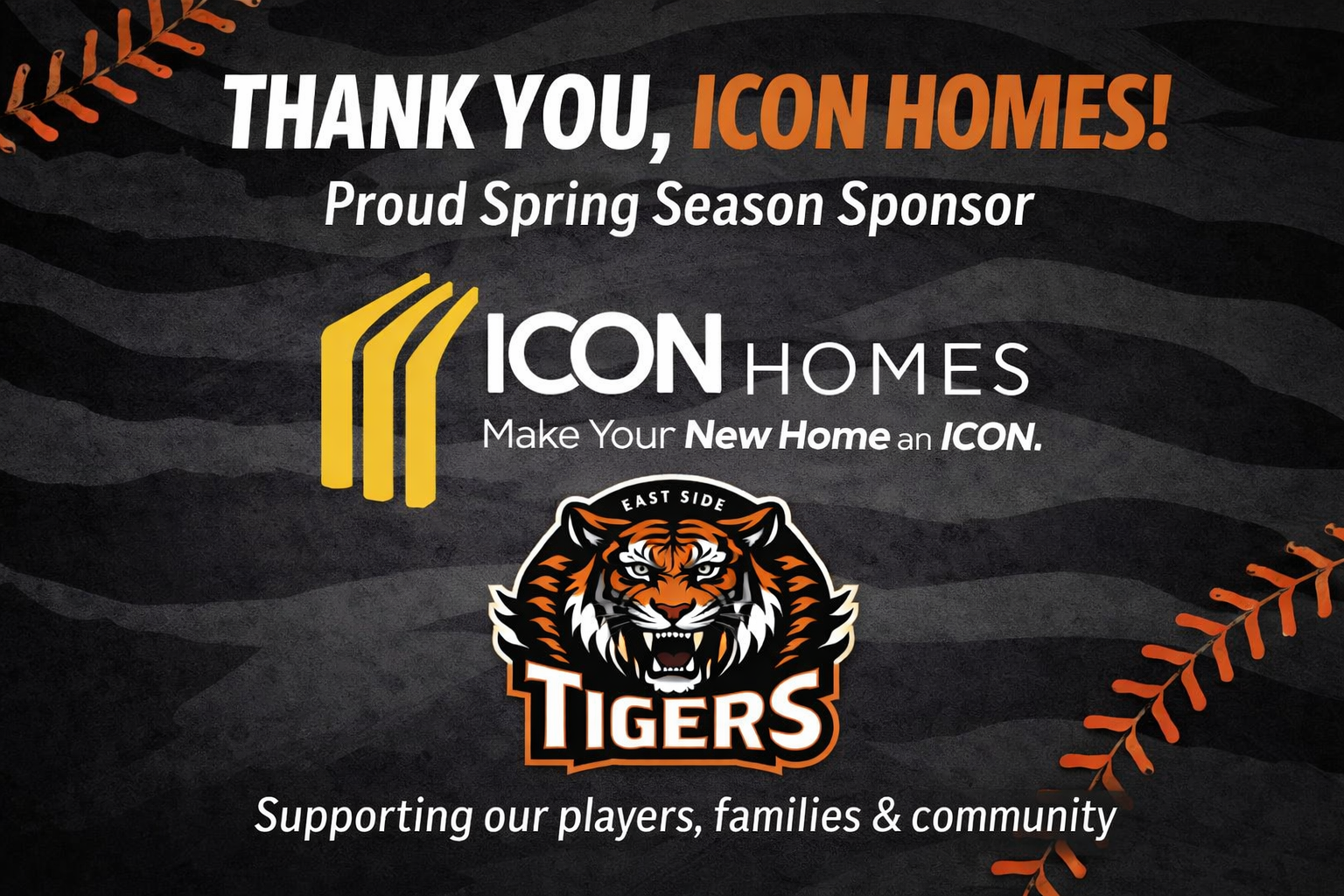 The Eastside Tigers would like to thank ICON Homes for their sponsorship for the 2026 season.