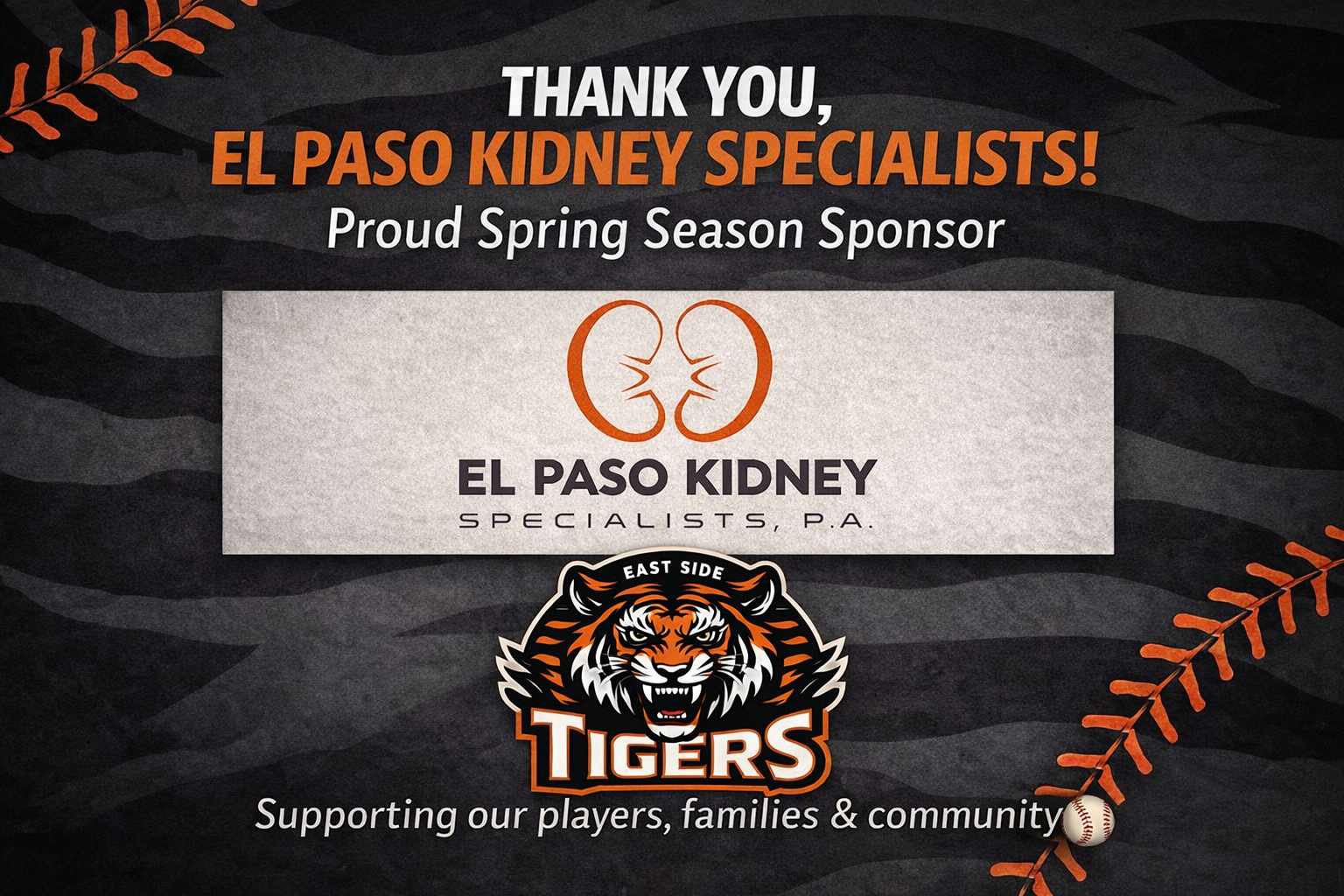 The Eastside Tigers would like to thank El Paso Kidney Specialist for their sponsorship for the 2026 season.