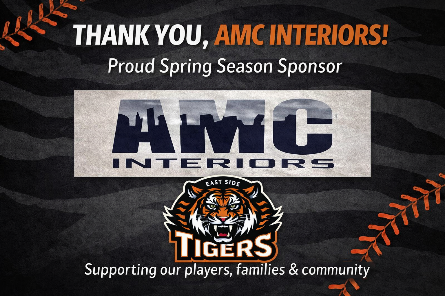 The Eastside Tigers would like to thank AMC Interiors for their sponsorship for the 2026 season.
